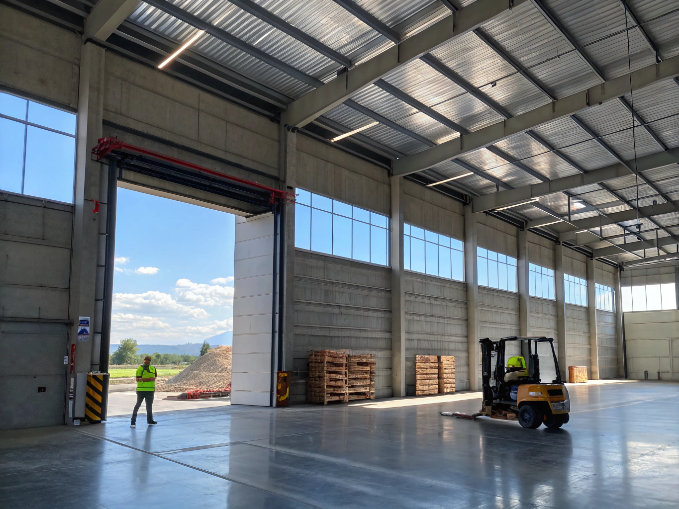 Großflächiges Logistikzentrum mit Hochregallagern und Verladezonen. Stahlbetonkonstruktion mit hoher Tragfähigkeit.