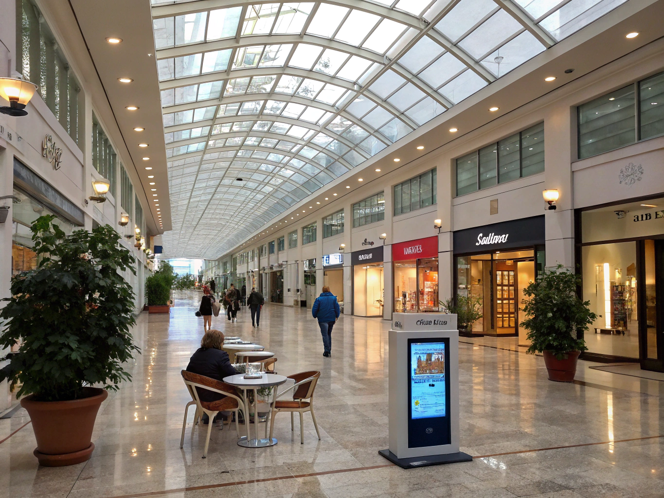 Modernes Einkaufszentrum mit offener Architektur, großzügigen Flächen und innovativer Stahlkonstruktion.